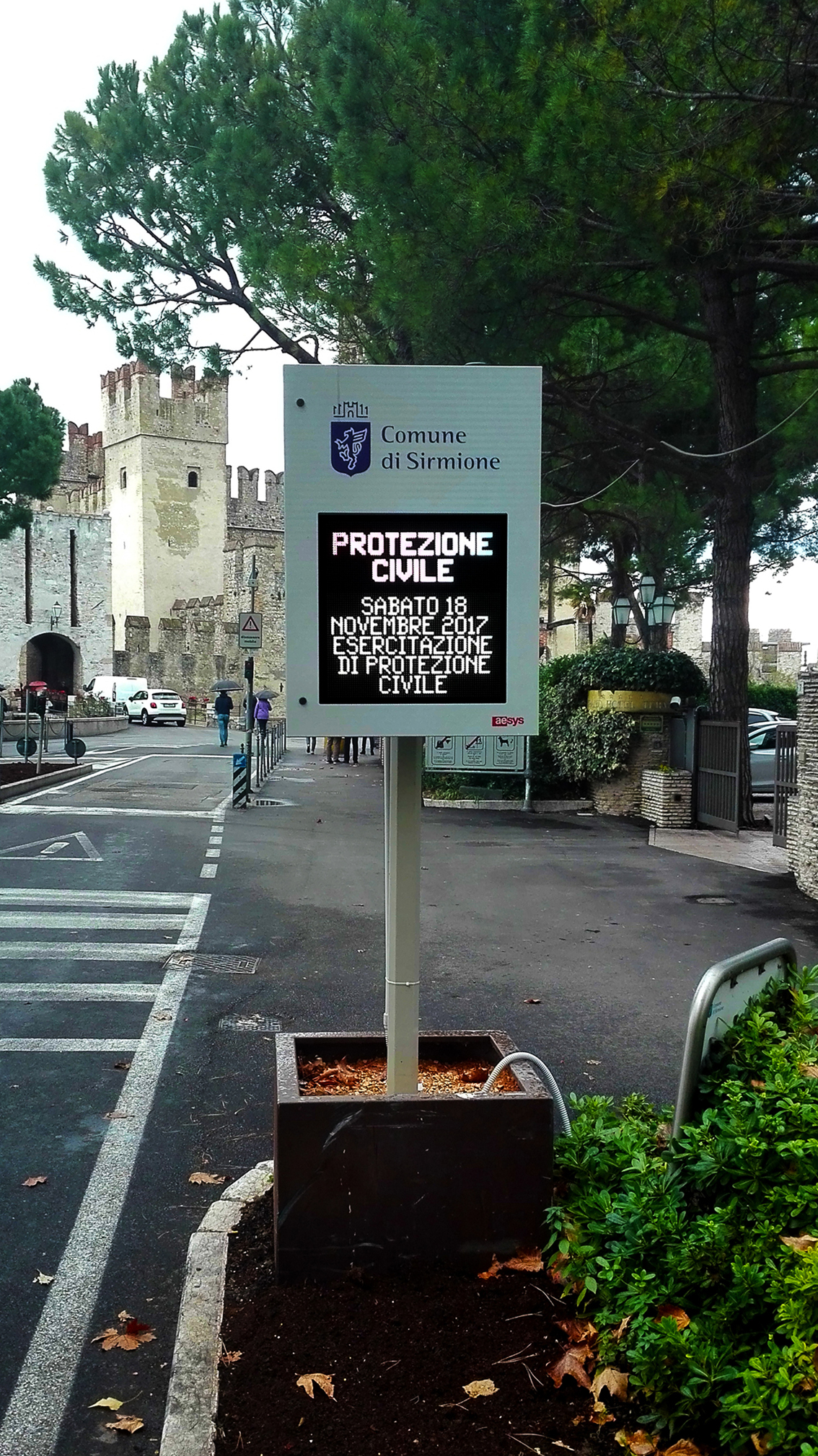 The displays integrated in the system and distributed throughout the territory (eg in the immediate vicinity of the underpass but also on the main roads leading to it) display pre-defined or compiled messages by the operator in real time, informing citizens of the alert situation. Use of images and text A color graphics area, combined with the monochromatic area reserved for text messages, displays the pictograms to communicate more immediately the alert or the interruption of traffic.
