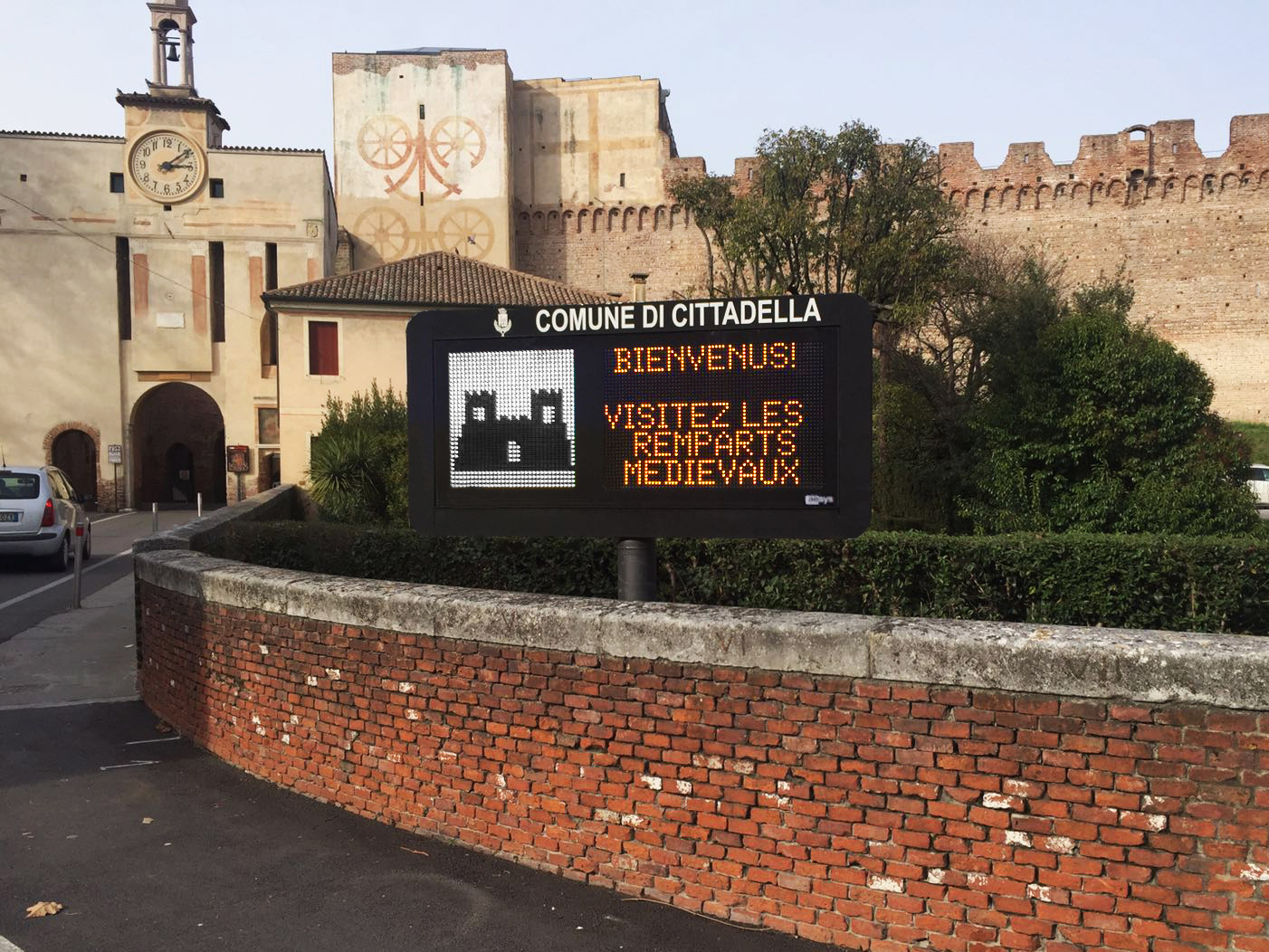 Infomobility Displays are Variable Message Signs (VMS) to be placed in various contexts: at the entrance and along motorways, at important road junctions, at the entrance to the city and along traffic lanes, beside the road or above the roadway.